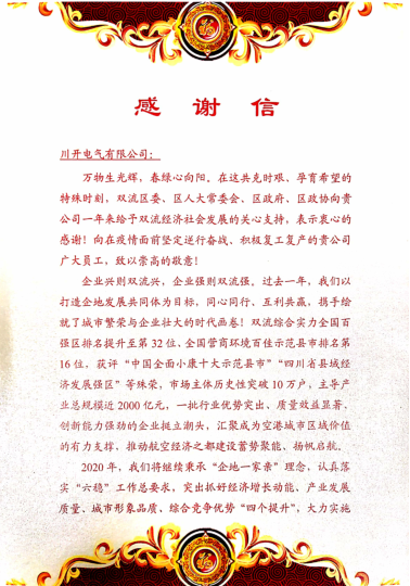 在双流这座最具开放、最具生活气息的空港城市中,川开电气必能成就梦想,创造价值,演绎精彩!
