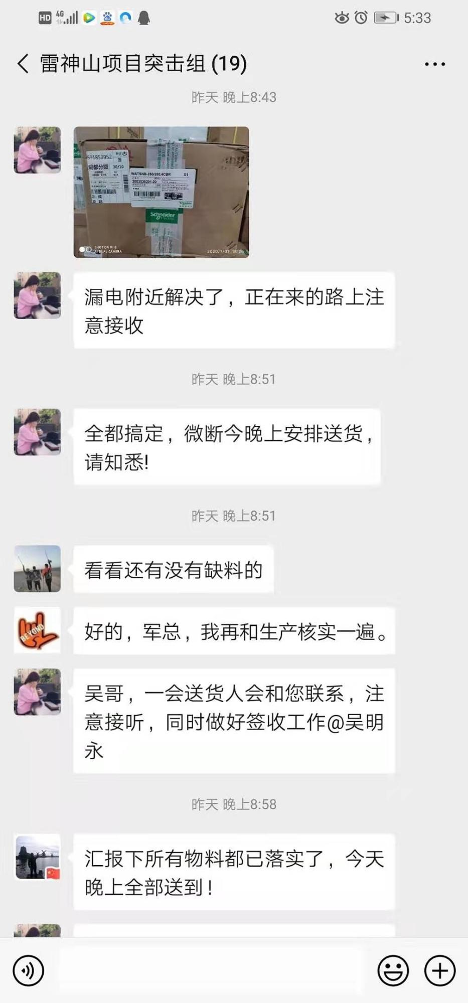 “雷神山项目领导小组”及“雷神山项目突击队”全体集结完毕。董事长李军发出战斗倡议:“今天公司承接了武汉雷神山医院配电设备项目,要求2月2号货到现场!国难当头,定当全心全力!特锐德川开电气的战友们从12点接任务,所有战友都是召之即来,来之能战的勇士,我们和武汉在一起!特锐德川开电气是有担当的企业!特锐德川开电气人是关键时刻能亮剑的英雄!”