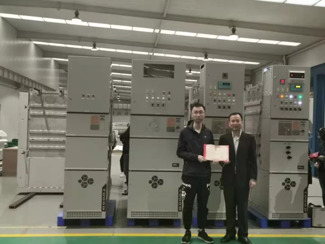 2019年10月24日,川开电气C-GIS-40.5首批迭代升级产品下线。公司董事长李军,副总经理邢志刚、罗安栋、杨杰,以及公司首席技术专家马力、充气柜事业部总经理贾伦和现场50多名技术、生产、检验等战友共同见证了这一历史性时刻。