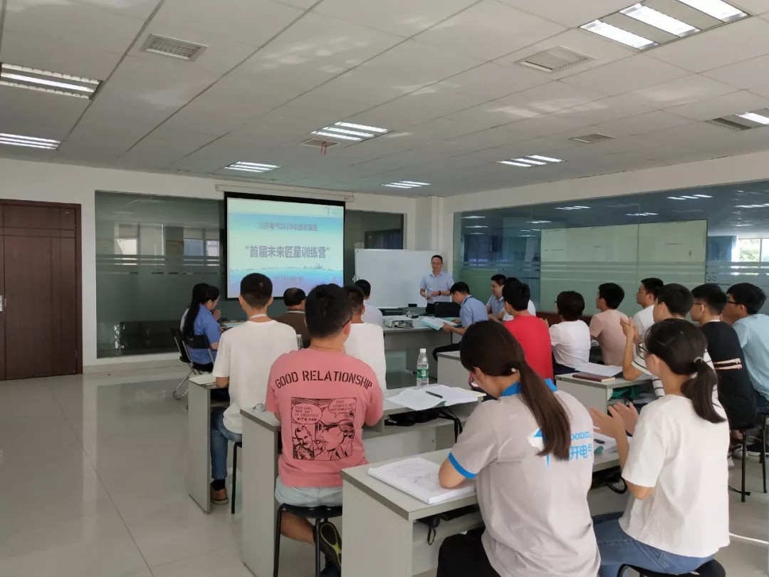 为满足市场需求,以技术驱动为导向,打造属于川开电气的未来“匠星”,练就公司一流的技术人才梯队,2019年7月12日上午,“川开电气首届未来匠星训练营”开班典礼在公司三号会议室如期举行。公司副总经理罗安栋、副总经理杨莉、首席技术专家马力、研究院院长姬广辉等相关领导出席。