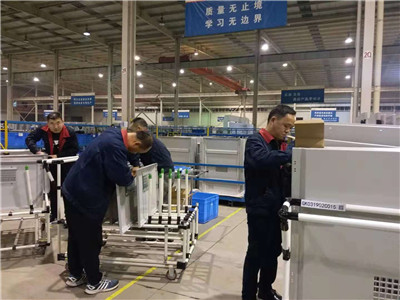 傍晚时分的川开电气生产车间灯火通明,人来人往,每条生产产线,都有条不紊的进行着各项工作。KYN 28产线处出现了一群可爱的身影。“开始点名啦!杨莉、张现峰、李俊宏、吕松梅、刘世龙、何建勇……”,一个个人名响起,一声声应答干脆利落。细看一番,有行政中心、信息部、工业工程部、生产调度部等各职能部门的战友,本该下班或在办公室工作的这群战友们,在每天下午下班后的这个时间点准时出现在了车间一线的现场。