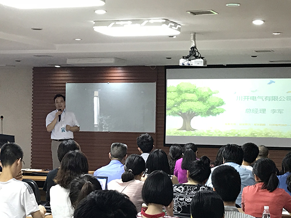 首先,川开电气有限公司总经理李军祝贺孩子们以优良的成绩进入大学的行列。同时指出此次活动旨在于让孩子们走进川开电气,让孩子们体会父母亲在公司里的付出,体会怎样用辛勤劳动创造价值、创造人生的辉煌!军总对于即将进入大学生活的孩子们提出几点要求: