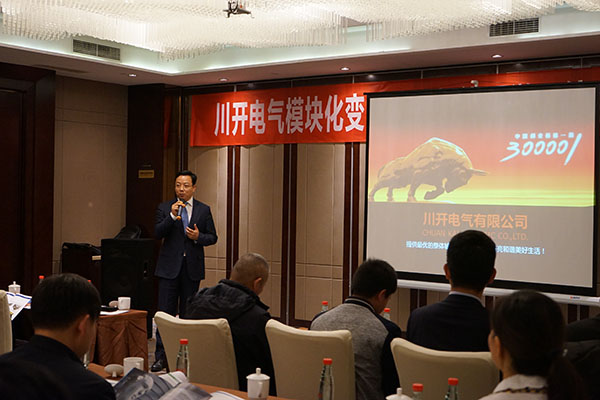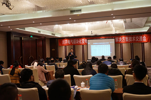 会议期间,变电站事业部副总经理黄恺以其专业的知识理论和强大的展现力为参会专家就110KV/220KV模块化变电站、大修技改、负荷转移、新能源微网、高寒高海拔地区产品以及系统解决方案作了详细的介绍和充分的沟通。