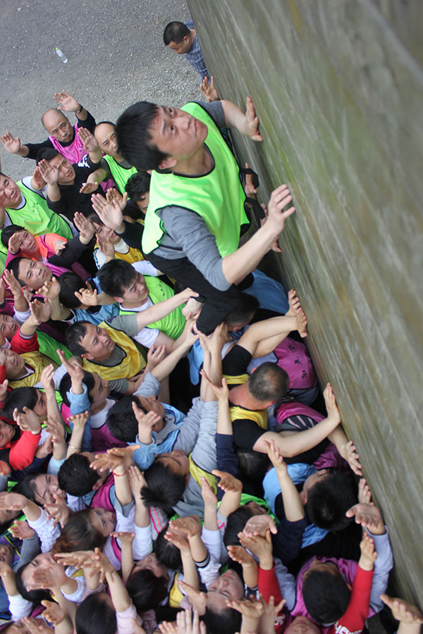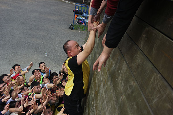 每位学员深藏于心的感谢、感动、无悔、值得,在毕业墙这个项目中得到完美的释放。当最后一位队员成功翻越四米高的毕业墙时,大家高举的双手瞬间变成喜悦、赞美的掌声久久不能停息。既为自己的勇敢鼓掌,也为人梯的无私奉献鼓掌,更为团队的默契鼓掌!