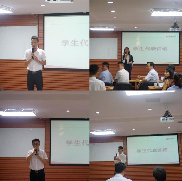 营销总监岳宏发表了对HIC学员们的鼓励,祝愿HIC全体成员前路致远,砥砺前行。培训顾问何依对培训过程的点滴进行了深情的回顾,蘸取笔墨,一字一句写下了HIC班的历程——《致我们优秀的HIC班》,并送出“坚持学习,不忘初心,永葆激情!”的上岗祝福。最后的导师致辞,副班主任李桂英携营销中心的全体战友送出毕业祝福。谈到对学员的期盼时说道:“放远眼光,忽略当下,长远规划,心系天下”。