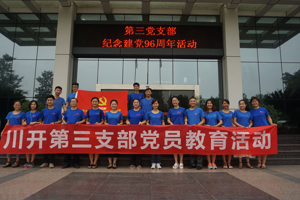 2017年是中国共产党成立96周年。为了纪念党的生日,加强党组织和党员的凝聚力和战斗力,深入弘扬十八大精神,大力营造迎接党十九大胜利召开的浓厚氛围,深化“两学一做”学习教育,川开电气党支部组织开展了系列主题活动:参观革命旧址、集中授课、重温入党誓词、量身份、树标杆等。