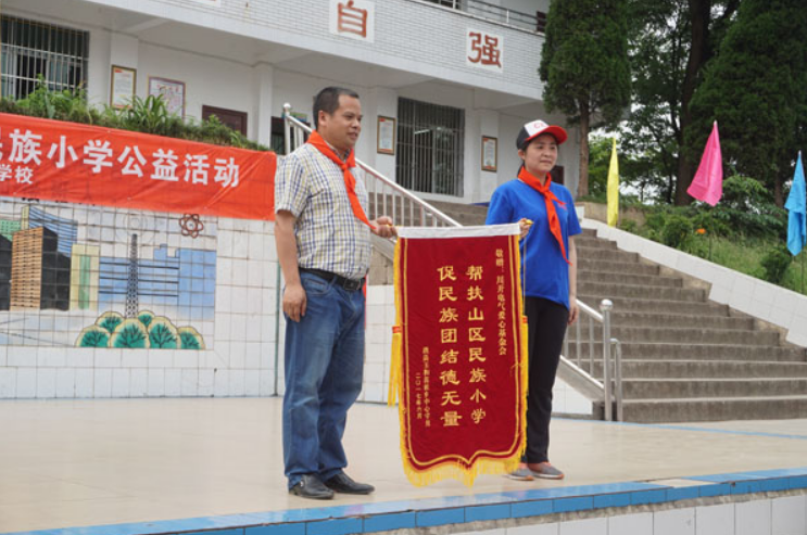可爱的苗乡小朋友们更是用《苗家迎客歌》质朴的表达对志愿者们的欢迎,将一切感谢之语汇成歌声。玉和苗族乡中心学校的罗校长对志愿者们的到来表达了热烈的欢迎并对全体川开人的爱心致以衷心的感谢。川开电气副总经理杨莉也代表全体川开人表达了对孩子们的美好祝愿和对老师的崇高敬意,以及表达了川开电气将建立长效的捐资助学机制,将爱心进行到底的决心。