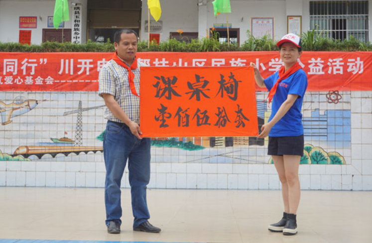 2017年初,川开电气爱心基金会在得知学校急需课桌椅后,积极联系课桌椅制作厂家,为玉和苗族乡中心学校定做了150套课桌椅,于2017年6月2日由志愿者们送达学校,圆了这些山区孩子的“新课桌梦”。玉和苗族乡中心学校罗校长介绍说,由于学校地处比较偏远的农村,受自然条件限制,不少学生家长常年在外打工,孩子们不仅缺少父母的关爱,而且生活也较为艰苦。用上崭新的课桌椅和全新的学习、体育用品,是孩子们期盼已久的心愿。