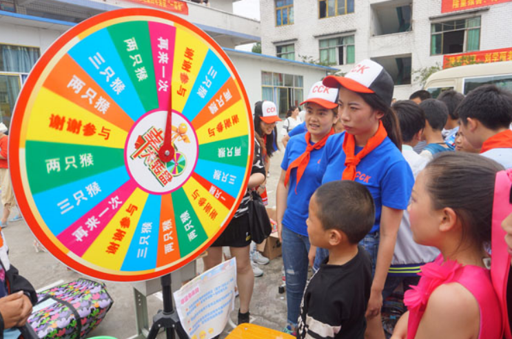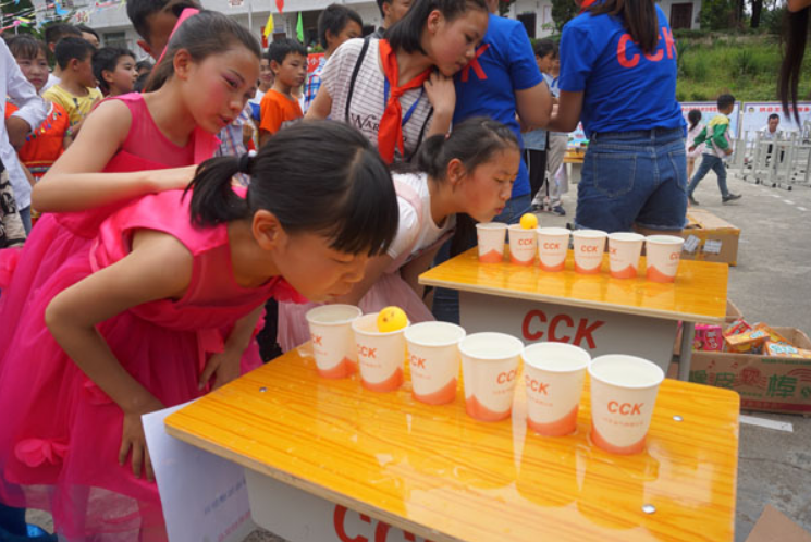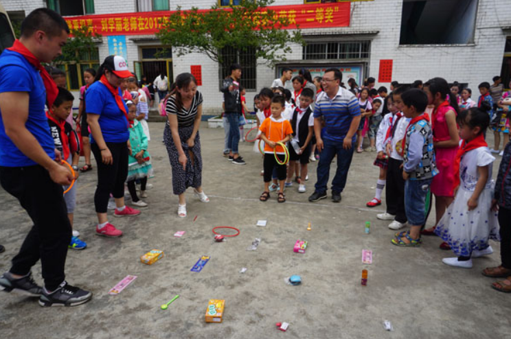 捐赠仪式结束后,川开电气的志愿者们在学校篮球场举办了精彩的爱心游园活动。活动通过“幸运你来转”、“爱心套圈圈”、“夹弹珠”、“夹球前进”、“吹乒乓球”等互动游戏,向参加活动的苗族乡学校的小朋友们派发活动小奖品,给他们带去欢声笑语,共享“童”心“童”趣。