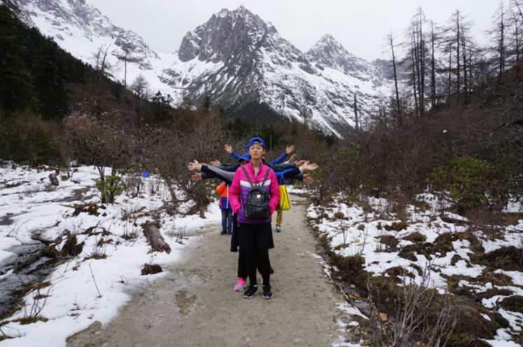 22日早上八点,在队伍集结完成后,我们准时向川西出发!随着汽车驶出长长的七盘沟隧道,车中的氛围开始活跃了起来。“阿坝最豪华的县城汶川到了。”我们的导游藏族小伙儿说道,并用一首热情的藏歌炒热了整车的气氛,随后活动总指挥杨莉组织全车的伙伴们唱起《大川开》,大家的情绪达到最高点。一路欢歌笑语向美丽的雪山前进,经过五个多小时的车程我们终于到达了美丽的毕棚沟。