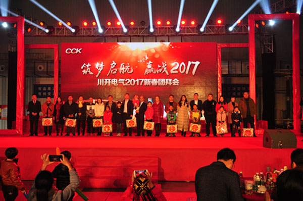 在《相亲相爱》乐曲中,川开电气董事长简兴福先生及公司领导举起吉祥祝福的美酒为“川开电气2017年新春团拜会”划上了圆满的句号。这浓浓的年味凝聚着川开人最真挚的情感,碰杯的脆响坚定着川开大家庭和睦、团结,凝聚着力量!
