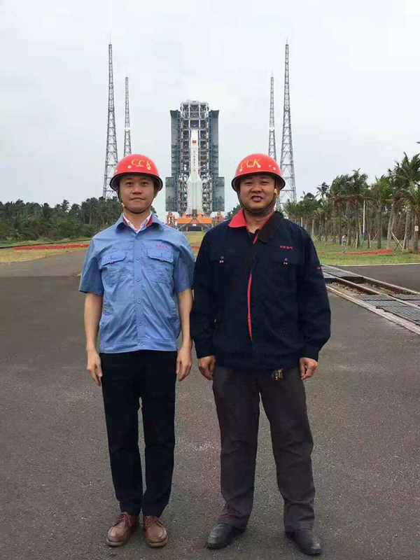 海南文昌航天发射场地处沿海地区,地势平坦、视野开阔,有利于航天发射。但由于其靠近南太平洋,大风大浪的袭击是难免会遇到的。2014年9月份,威马逊超强台风袭击海南,文昌航天发射场面临全场停水停电,所有工作都无法进行,我公司售后服务人员詹旋等人在接到海南发来的紧急信息后,第一时间从四川出发,第二天便赶赴到海南发射基地现场。由于道路积水导致交通瘫痪,我们的工作人员只有徒步前行,身上的雨衣抵挡不住瓢泼大雨,衣服早已湿透,耳边只有呼啸的风声响起,在所有人都在躲避台风时,他们迎着风浪而去,步履蹒跚,平时十几分钟的短短路程,他们用尽全力以最快的速度都走了差几分钟一个小时。到达现场后便迅速进入事故地进行抢险送电,事态紧急容不得一丝一毫的差错,脸上早已分不出是自己汗水还是雨水,但是他们顾不上这些,最终准确及时的恢复供电,将损失最大程度的减少。