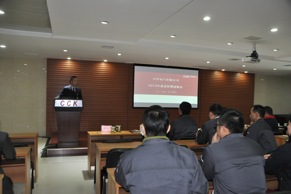 2016年1月14日,川开电气有限公司2015年度总结暨述职会在六楼会议室正式召开。一年一度的年终总结大会,旨在总结2015年工作中的亮点,反思不足,对新一年的工作做出规划和建设。