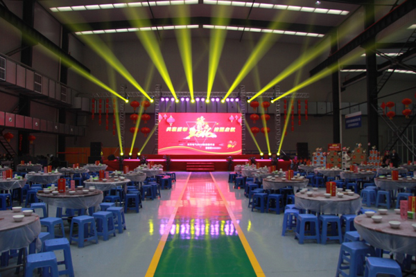 2月4日当天,整个川开工业园都洋溢着红红火火的节日氛围,大红的灯笼高高挂起,飘扬的彩带拂起佳节的喜庆,这一切都在指引着大家前往本次团拜会的会场。绚丽的舞台已经搭好,五彩的灯光准备就绪,100多桌的大团年宴席已经摆开,恭候每一位勤恳的川开人及川开的朋友们在此共同庆祝新春佳节。