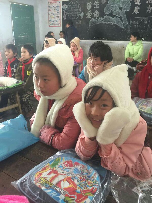 爱心大巴路奔跑在高速,路过了繁华的城市,盘旋在崎岖的山路,越接近目的地,车外环境越加荒凉。辗转6个多小时的车程过后,终于到达了珙县玉和乡。长时间的车程并没有让我们感到疲惫,一下车,大家就按照分工开始分配爱心暖冬物资,准备前往玉和乡凤凰民族学校。中午一点半左右,我们顺利到达。刚到学校的小操场,我们就听到了朗朗读书声,在校方致辞后,捐赠仪式正式开始。志愿者们为30位贫困的孩子们分发了围巾、书包和糖果等等。对城里孩子来说,这些就是普通得不能再普通的日常用品,而对他们来说,确是一种奢望。看着小小年纪却粗糙不堪、被冻得通红的一张张小脸和一双双小手,寒冬里依旧身着单薄的衣裳和鞋裤的小身板儿,我们每个人心中都久久不能平静。然而我们却看不出或感受到孩子们有一丝难过和抱怨,只看到最天真无邪的笑脸和听到阵阵爽朗的笑声,更让我们心中百感交集。捐赠仪式后,我们为小朋友们播放了电影《大圣归来》。川开电气的志愿者们还为小朋友们送上了热气腾腾的的水饺。吃过水饺后,孩子们心满意足的踏上了放学回家的崎岖山路。看着他们远去的背影,我们再一次感慨万分。