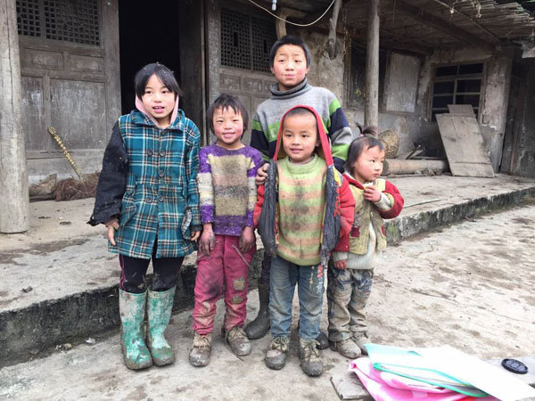 以第三小组负责走访的6户家庭为例,其家庭构成大多可以用“畸形”二字来概括。家中基本是父母均有智力障碍,或有残疾,或是过世,或是因为难以忍受贫困早早撇下孩子离家出走。总之,幸运的家庭只有一种,而不幸的家庭却有各自的不幸。这些家庭基本没有固定收入,除了每月很低的贫苦补助外,就靠亲戚和好心人接济。整个家庭的基本温饱成了最大的问题,对他们来说每一天似乎都是生存大挑战,众多的姊妹,衣不蔽体,食不果腹,辍学在家,还有四壁透风、漏雨的家……,这一切都让我们每一位志愿者觉得触目惊心。不是亲眼所见,或许我永远都不会相信这世界上真的会有这么贫困潦倒的家庭!我们为他们送上了大米和食用油,还有一些暖冬的衣物,包括我们随身携带的小零食和充饥的方便面,这一切对他们来说,像抓住了些许救命稻草!我们也深切的知道,这一点小小的救济,又能改变这个残缺的家庭什么呢?当那些瘦弱的身板儿穿上这些捐献的棉衣,高兴的手舞足蹈,直喊“真暖和”的时候,我们心酸至极!他们无法选择自己的出生和命运,在这样的家庭,小小年纪的他们需要承受的是我们成年人都无法想像的!