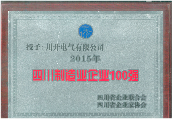 2015年11月26日,四川省企业联合会、四川企业家协会在成都香格里拉大酒店发布了《2015四川企业发展报告》,我公司荣获“2015年四川省制造业企业100强”荣誉称号。