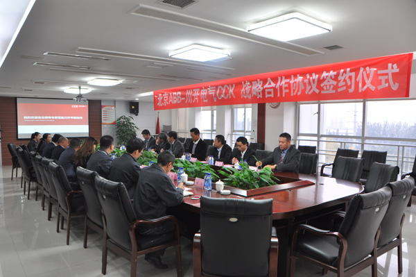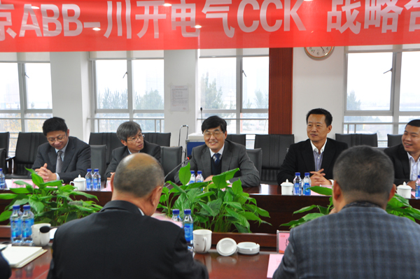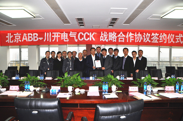 下午3点,以北京ABB高压开关设备有限公司高级总裁黄建华为首的ABB管理团队一行8人与川开电气董事长简兴福带领的管理团队共同出席了ABB-CCK战略合作签约授牌仪式。