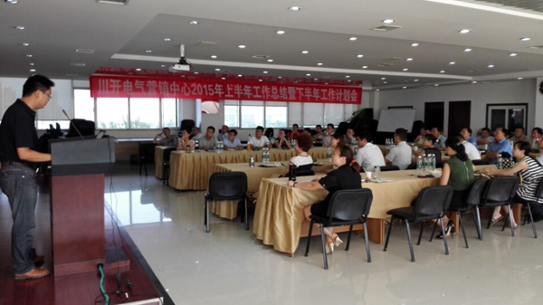 此次会议参会的主要领导有川开集团副董事长袁会云,川开电气总经理李军,电气口管委会成员,以及营销中心各部门负责人、区域、行业总监等。本次会议主要以数据展示上半年工作开展成果以及下半年工作支撑,充分体现结果导向的营销特征。