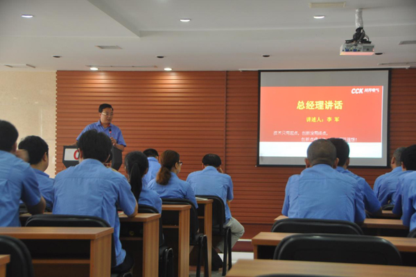 2015年7月8日下午16:00整,川开电气《电气开关设备类培训教材》首发仪式在公司六楼会议室隆重举行。公司总经理、公司管委会成员、该本教材编审委员会成员以及部分新入职学生代表参加了此次会议。