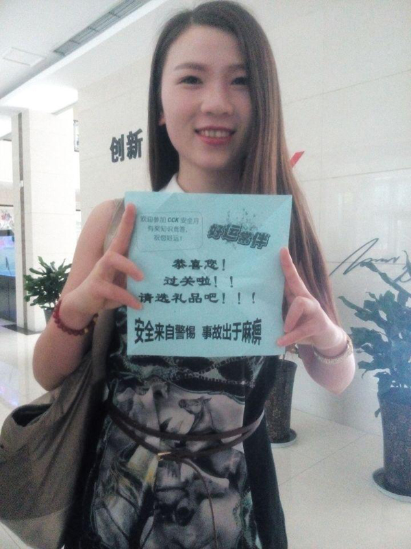安全有奖问答活动从2015年6月1日开展了为期5天的每日安全一题活动,题目类型系统全面,既有公司各项规章制度内容,又有安全常识问答,还有有趣新颖的猜谜题,通过此项活动,扩展并巩固了员工日常及专业安全知识,增强员工安全意识,也调动了员工参与安全月活动的热情。