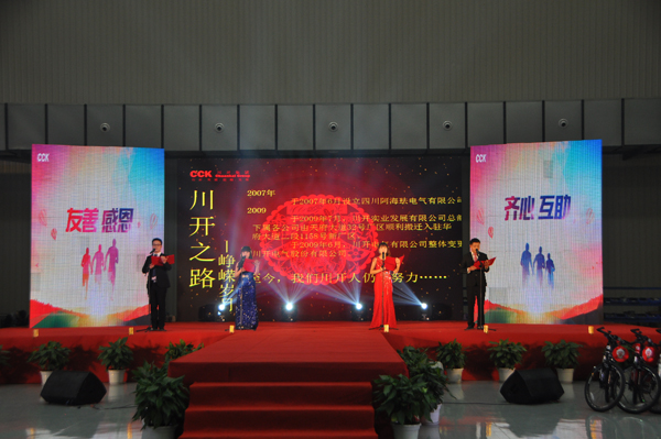 其中“最给力川开人”的评选和“爱心基金捐赠”仪式都把我们的年会推向了高潮。在这两个环节中,我们体会到了“给力川开人”一代传一代的“给力”精神;也感受到了我们川开人的爱心和责任;我们愿意肩负社会责任,为贫困儿童的家庭托起明天的太阳。