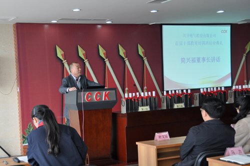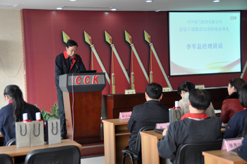 结业典礼上,简主席充分肯定了举办干部教育培训班的好处与必要性,并号召全体干部同志要认认真真学本事,踏踏实实干工作,王洪总裁也赞扬了川开电气对干部培养的高度重视,并期望川开电气能继续举办干部教育培训班,让我们的管理干部无论是在业务水平还是在管理技能上能得到大幅度的提高。