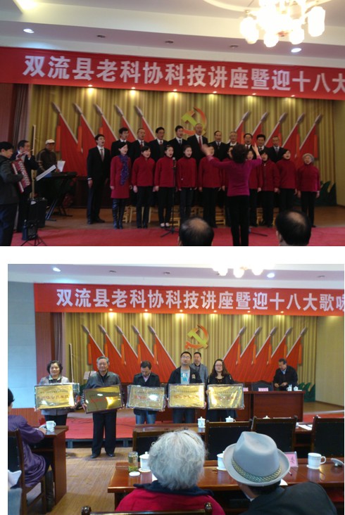 2012年10月25日双流县老科协科技讲座暨迎十八大歌咏比赛在双流香澜苑会议厅举行,各组织系统代表企业及原科协离退休老干部欢聚一堂,共同聆听此次讲座,并用歌声迎接党的十八大胜利召开,我公司相关人员也参加了此次会议。