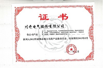 为加快落实市委、市政府确定的产业倍增战略,按照《成都市人民政府办公厅关于扶持地方名优产品促进灾后重建和经济发展的试行意见》精神,我公司按产品类别进行了申报。经县扶优办推荐,市扶优办核实后,我公司产品按机电产品中的变电设备及开关设备类被列入2012年成都市地方名优产品推荐目录。