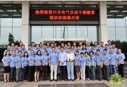 本着提升中层能力,培养优秀人才,发展内部文化,实现长足发展的宗旨,川开电气首届干部教育培训班于2012年5月23日成功开班。川开集团党委委员、总裁王洪,集团党委副主席、副总裁李怀玉,集团副总裁,川开电气副董事长袁会云,川开电气总经理李军、川开电气高级顾问龚友明出席了开学典礼。