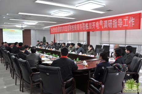 为深入推动四川省重大科技成果转化工程的实施,加快双流县科技成果转化工作,3月7日,成都市科技局高新处伍川副处长、法规处黄海副处长、双流县新能源研究院陈旭院长、双流县科技局徐富琼副局长一行赴川开电气股份有限公司考察科技成果转化和自主创新工作。我公司围绕科技创新和科技成果转化工作内容向市、县科技局领导作了工作汇报,重点介绍了高压输配电开关设备关键技术产业化应用、AP1000新型抗震电缆桥架及支撑系统国产化应用、DY系列交流和直流一体化电源系统共三个项目的成果转化工作。市科技局伍处长对川开电气实施的科技成果转化工作给予了鼓励和认可。