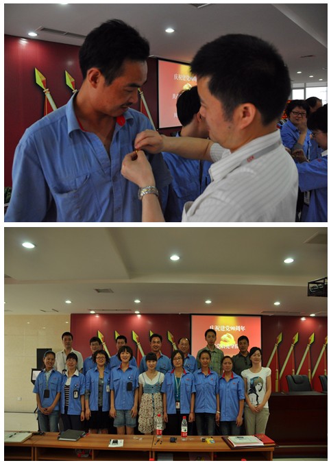 7月1日下午,在公司党群工作部组织下,所有党员都庄严的佩戴上了一枚党章。党员们将在日常工作中亮出身份,更加积极主动的争当模范先锋,更加透明的接受群众的监督。