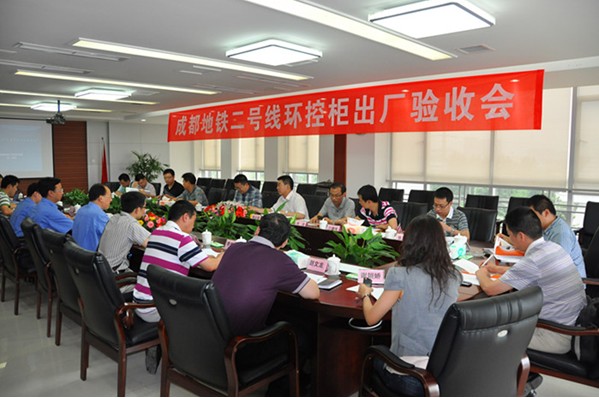 2011年6月22日下午,由轨道公司建设分公司、运营分公司、中铁二院、广州地铁院、天津路安监理等有关单位的专家组成的验收小组,在成都轨道交通有限公司建设分公司副总经理陈华银的带领下,对我公司地铁2号线环控电控柜样机(东部副中心站)进行了出厂验收。