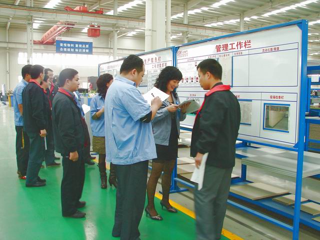 10月18日星期二下午,“质量月”活动评审小组对生产系统板报组织了现场评比。整个评比活动分两个阶段进行。一是现场观摩,互相交流,记录意见;二是集中讨论,分别评分,通报结果。现场观摩完毕后,评审小组趁热打铁,紧接着在办公大楼二楼会议室进行集体评分。评审小组按照看板整洁与完好度、版面布局、视觉创意性、内容更新及时性、板块内容是否积极向上、是否有相关质量改进计划或管理措施等项目分别评分,由评审小组组长张秀琼汇总后取平均分从高到低依次排名。