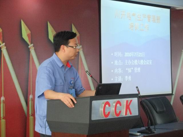 (川开电气中压讯 黄荣) 2010年7月21日18时,公司生产管理部“5S管理培训”在川开工业园区主办公楼六楼会议室隆重举行。此次培训会由生产管理部部长李勇主持,主要针对生产管理部下属各车间负责人及车间班组长。公司总经理李军,人力资源部部长朱海洪等出席了本次培训。