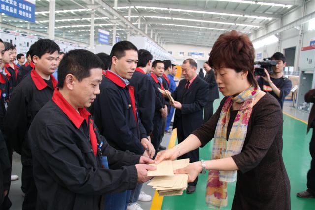 在“五•一”国际劳动节来临之际,双流县总工会党组书记、常务副主席潘万香与县红十字会有关领导带领相关人员,于 4月29日亲临我公司生产一线看望慰问职工,把县委、县政府的关怀和节日祝福送到职工手中。集团董事局主席简兴福、集团工会主席李怀玉等陪同慰问。